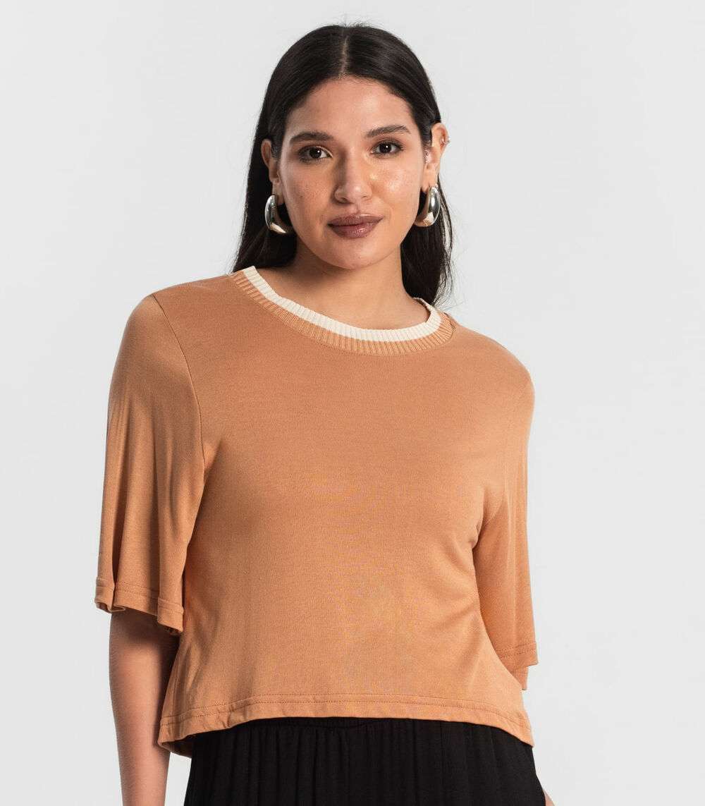 Camiseta Feminina Meia Malha Manga Fluída Rovitex Marrom