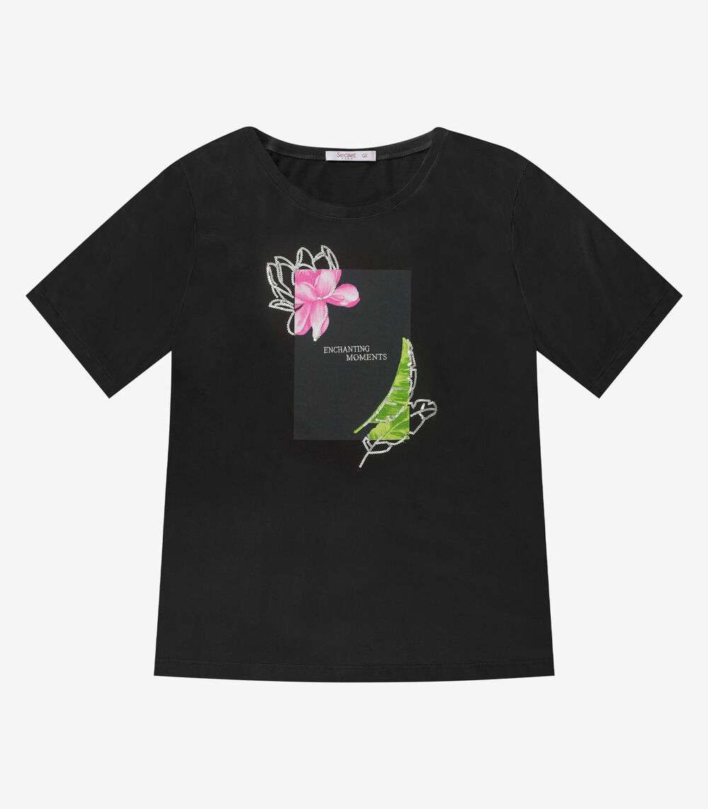 Camiseta Feminina Plus Size Secret Glam Preto