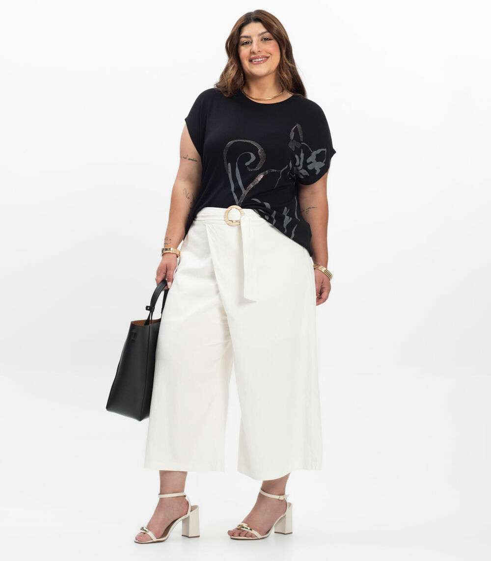Camiseta Feminina Plus Size Secret Glam Preto