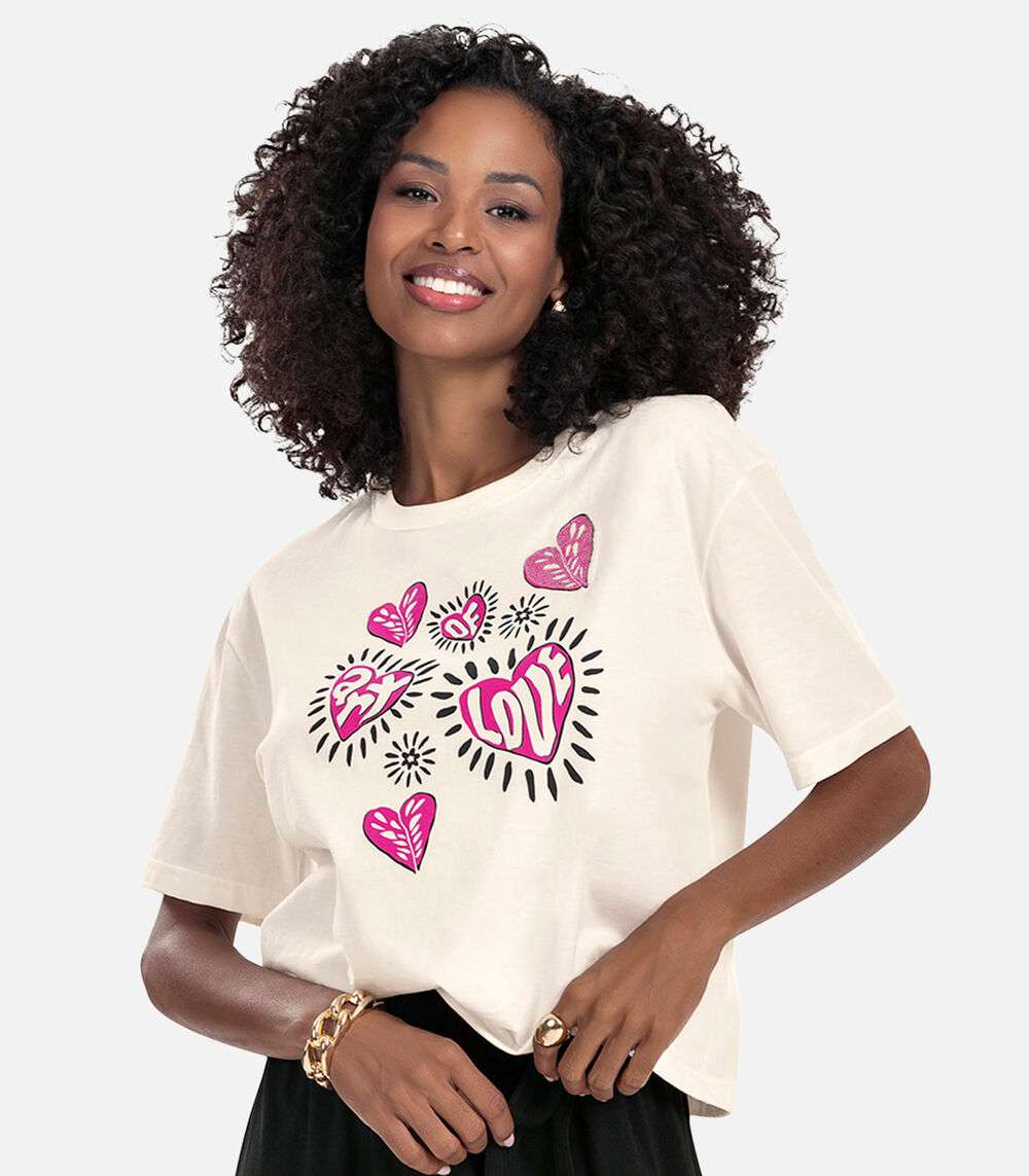 Camiseta Feminina T- Shirt Meia Malha Rovitex Bege
