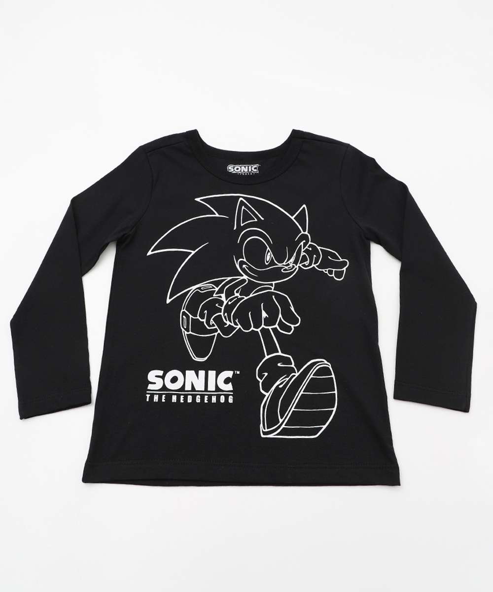 Camiseta Infantil Estampa Sonic Tam 4 a 10 Preto