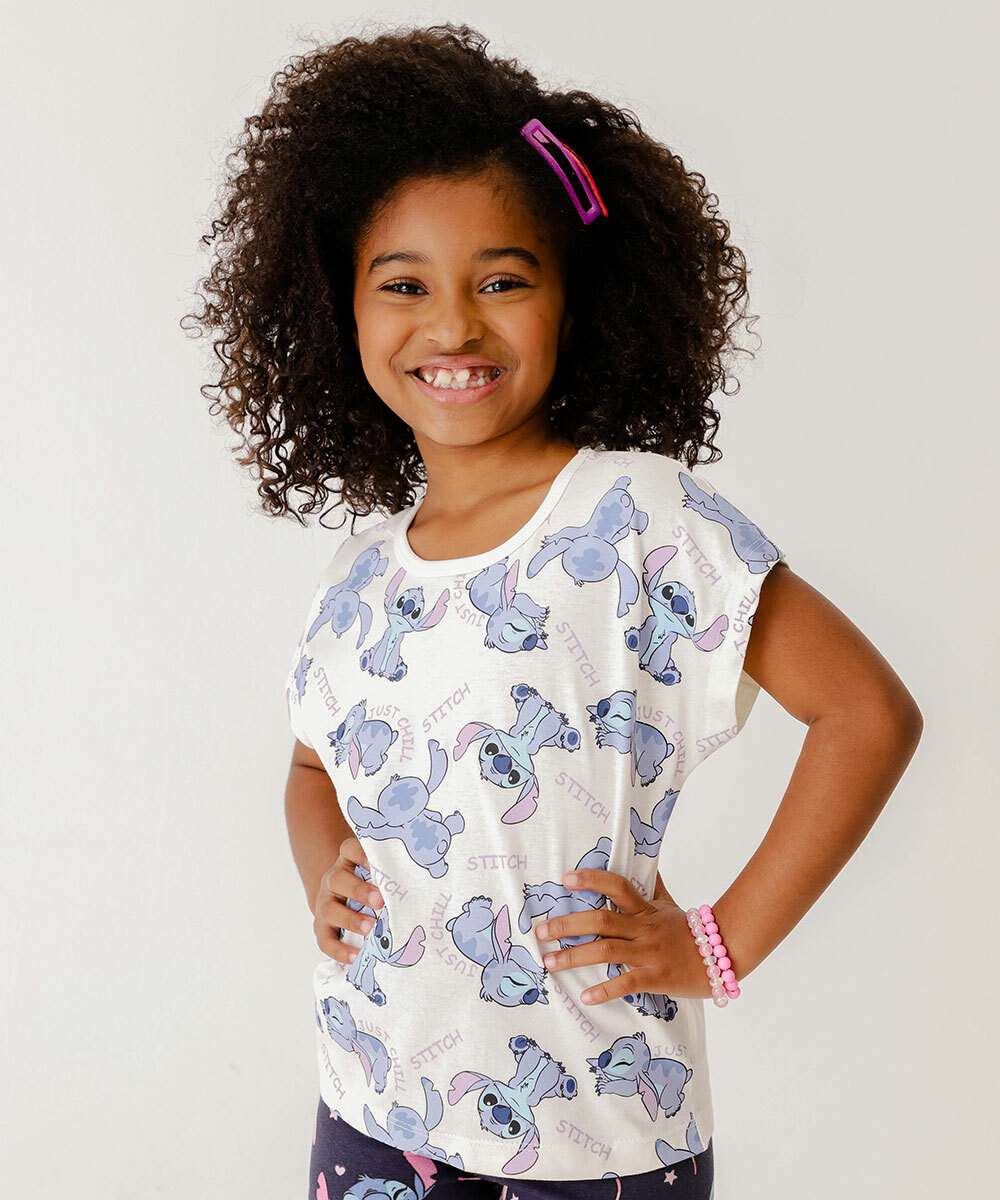 Camiseta Infantil Estampa Stitch Disney Tam 4 a 10