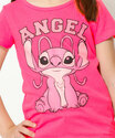 Camiseta infantil, ideal para meninas de 04 até 10 anos de idade, confeccionada em malha algodão. Possui estampa Stitch, decote redondo, manga curta, acabamento e costura no tom.