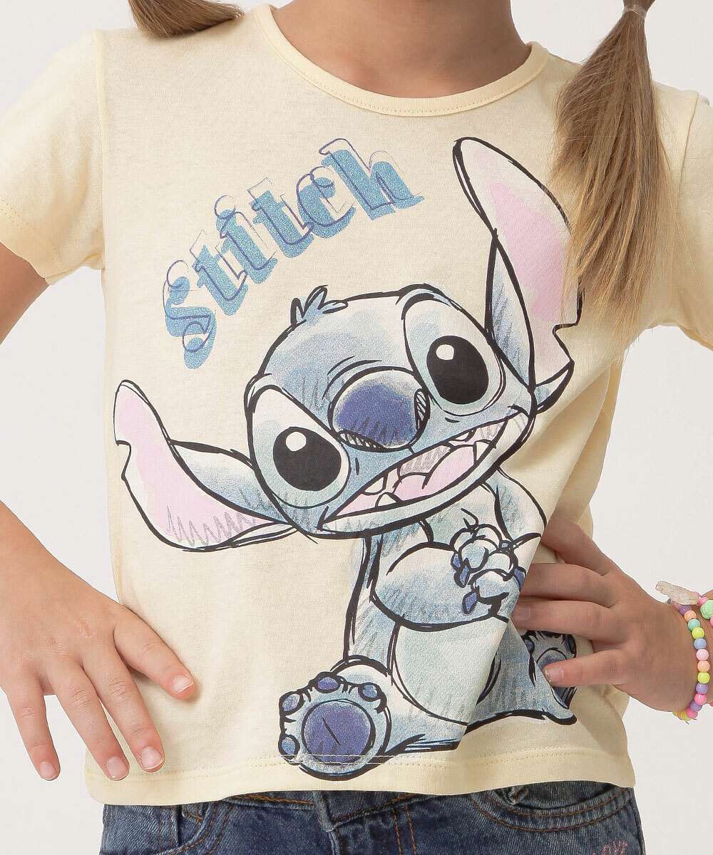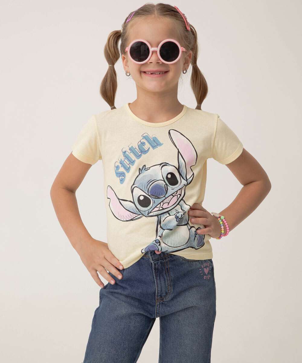 Camiseta Infantil Estampa Stitch Glitter Tam 4 a 10 Amarela
