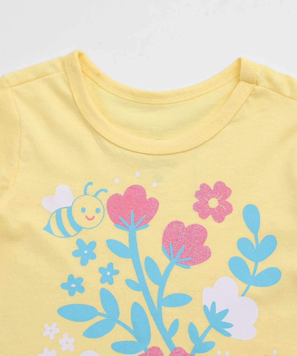 Camiseta Infantil Flores Manga Curta Marisa Tam 1 a 3