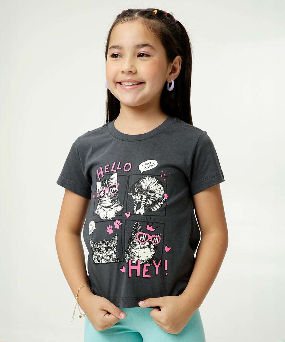 Camiseta Infantil Manga Curta Gatos Marisa Tam 4 a 10