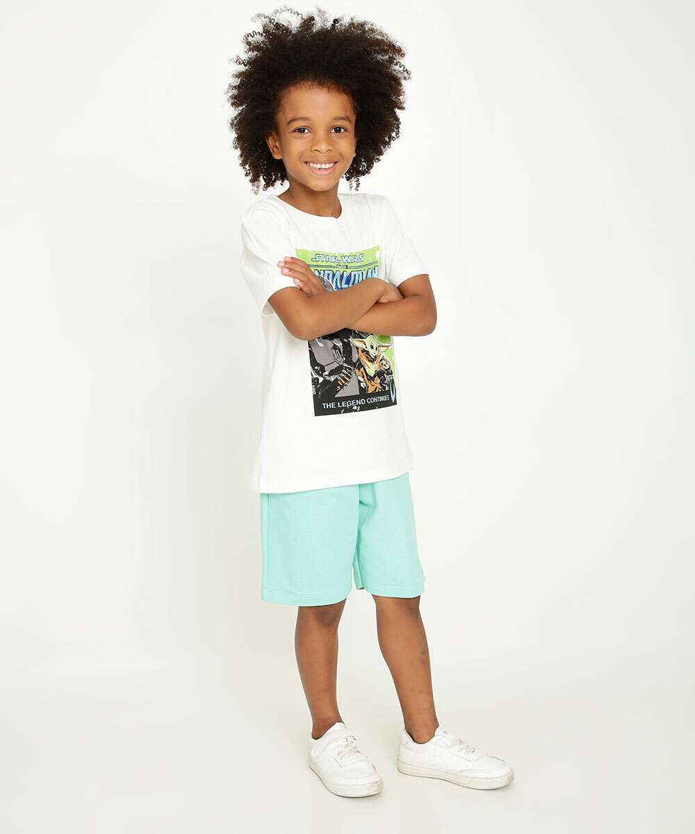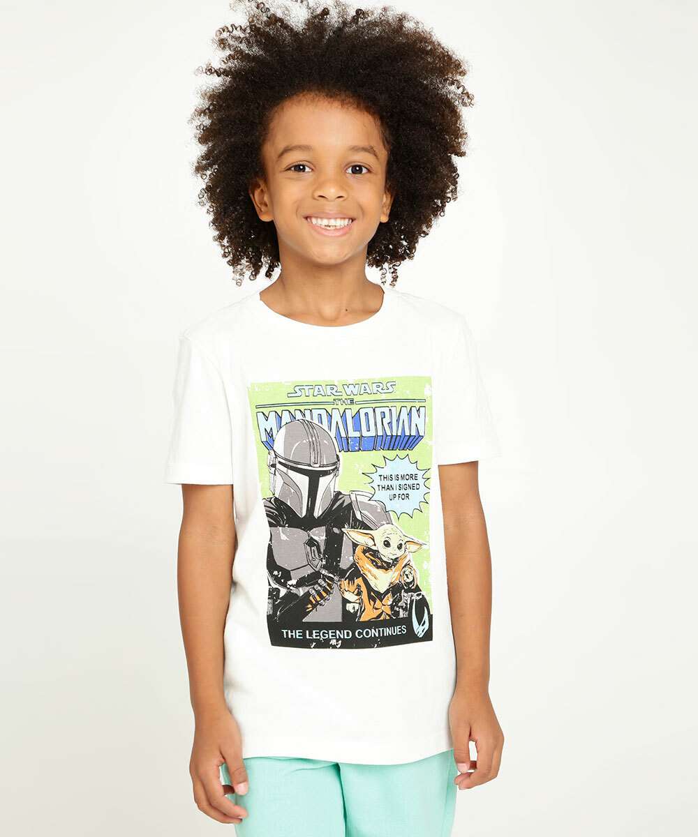 Camiseta infantil, ideal para meninos de 04 até 10 anos de idade, confeccionada em malha algodão. Possui gola redonda, estampa frontal Star Wars, manga curta, acabamento e costura no tom.