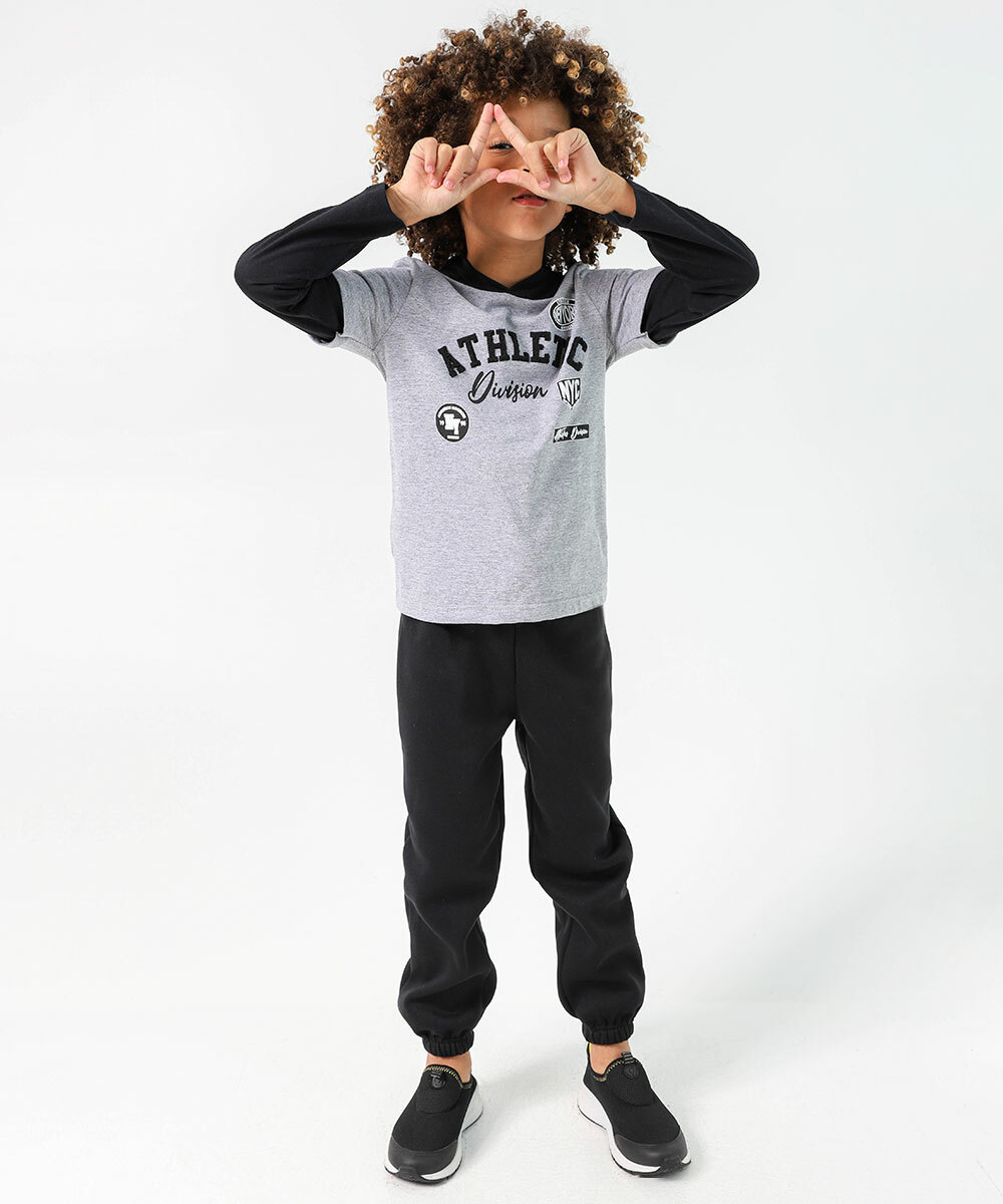 Camiseta Infantil Manga Longa Capuz Marisa Tam 4 a 10 Cinza