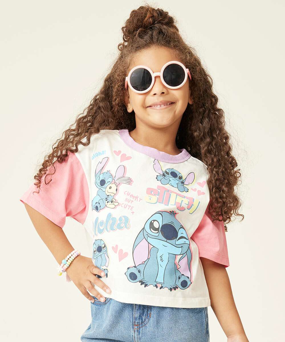 Camiseta Infantil Stitch Manga Curta Disney Tam 4 a 10