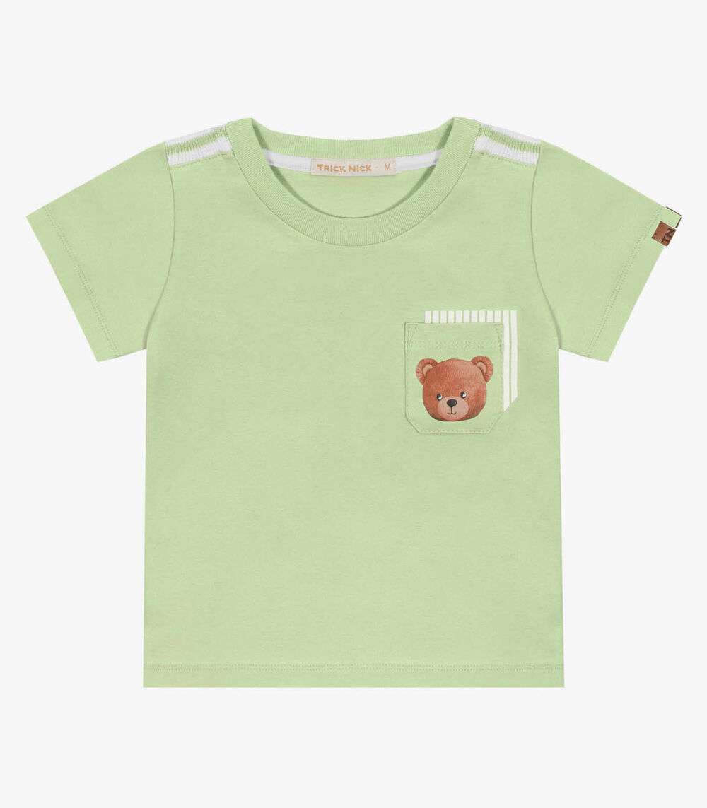 A Camiseta Infantil Ursinho Trick Nick é confeccionada em cotton leve, garantindo conforto e frescor durante todo o dia. O destaque fica por conta do recorte no ombro em retilínea, que adiciona um toque moderno e sofisticado. A peça conta com um bolso charmoso, decorado com estampa aplique zero, que combina estilo e funcionalidade. Ideal para o uso diário, esta camiseta une design atraente e conforto, tornando-se uma escolha prática e estilosa para os pequenos.
