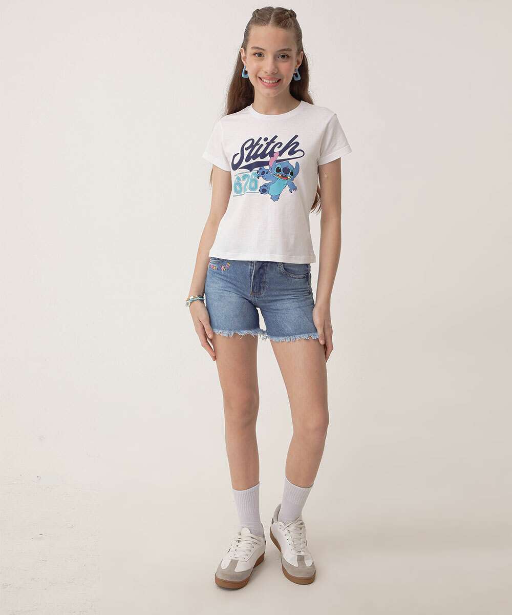 Camiseta Juvenil Frase Stitch Disney Tam 10 a 16