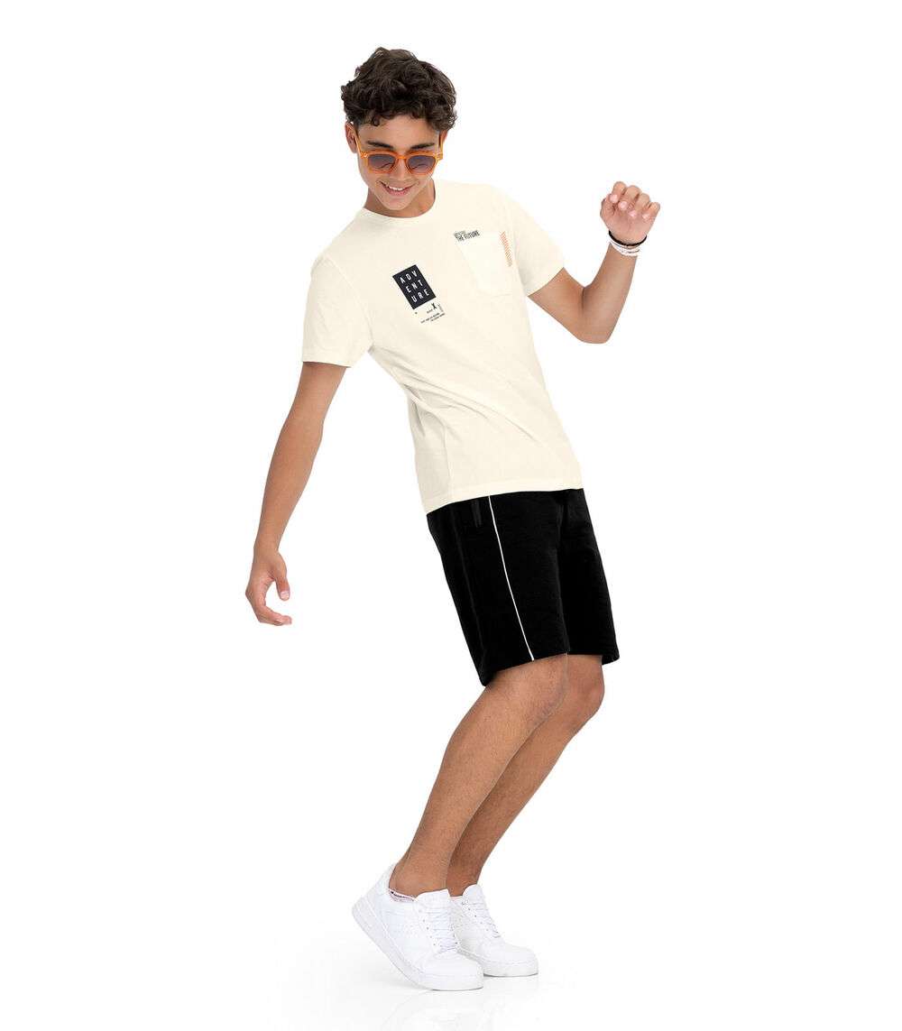 Camiseta Juvenil Masculina Com Bolso Minty Bege