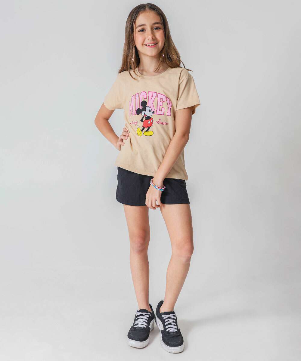 Camiseta Juvenil Mickey Disney Tam 06 a 14 Bege
