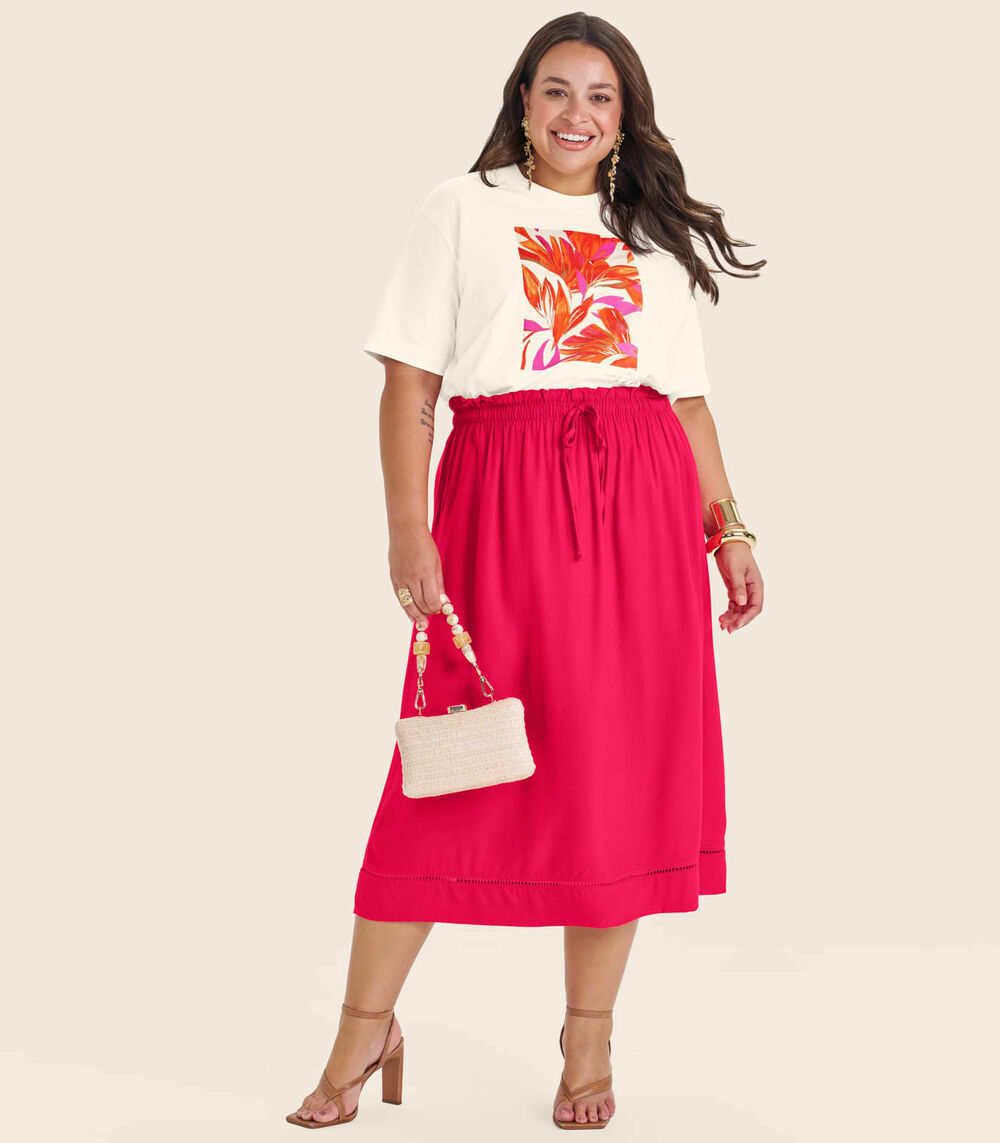 Camiseta Manga Curta Plus Size Secret Glam Bege