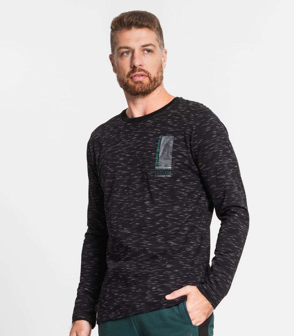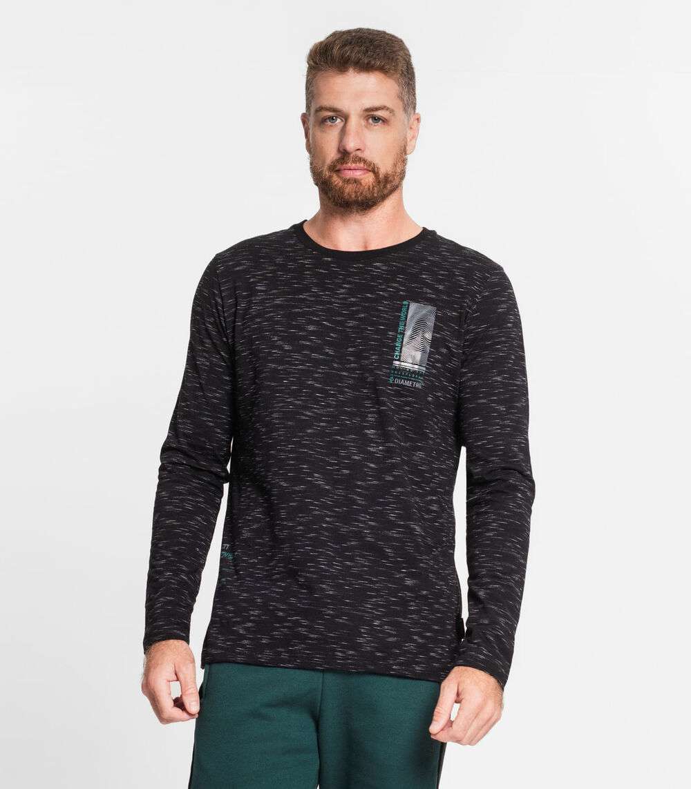 Camiseta Manga Longa Em Meia Malha Diametro Preto