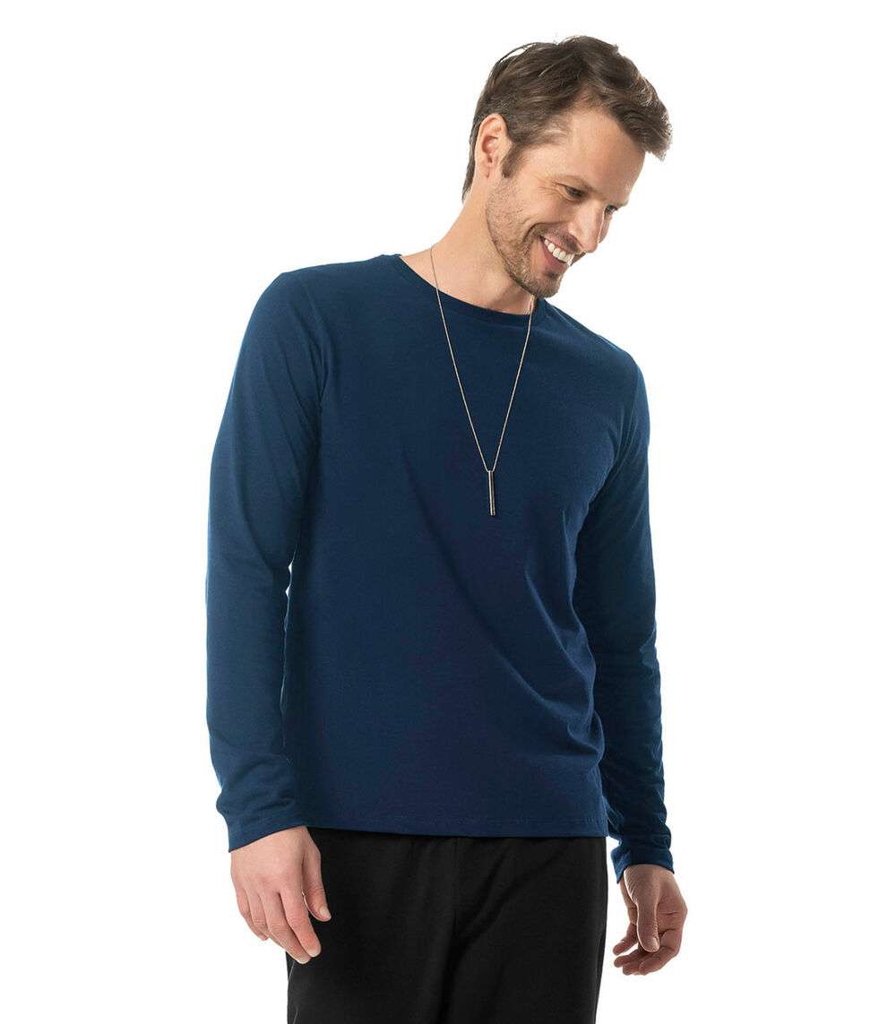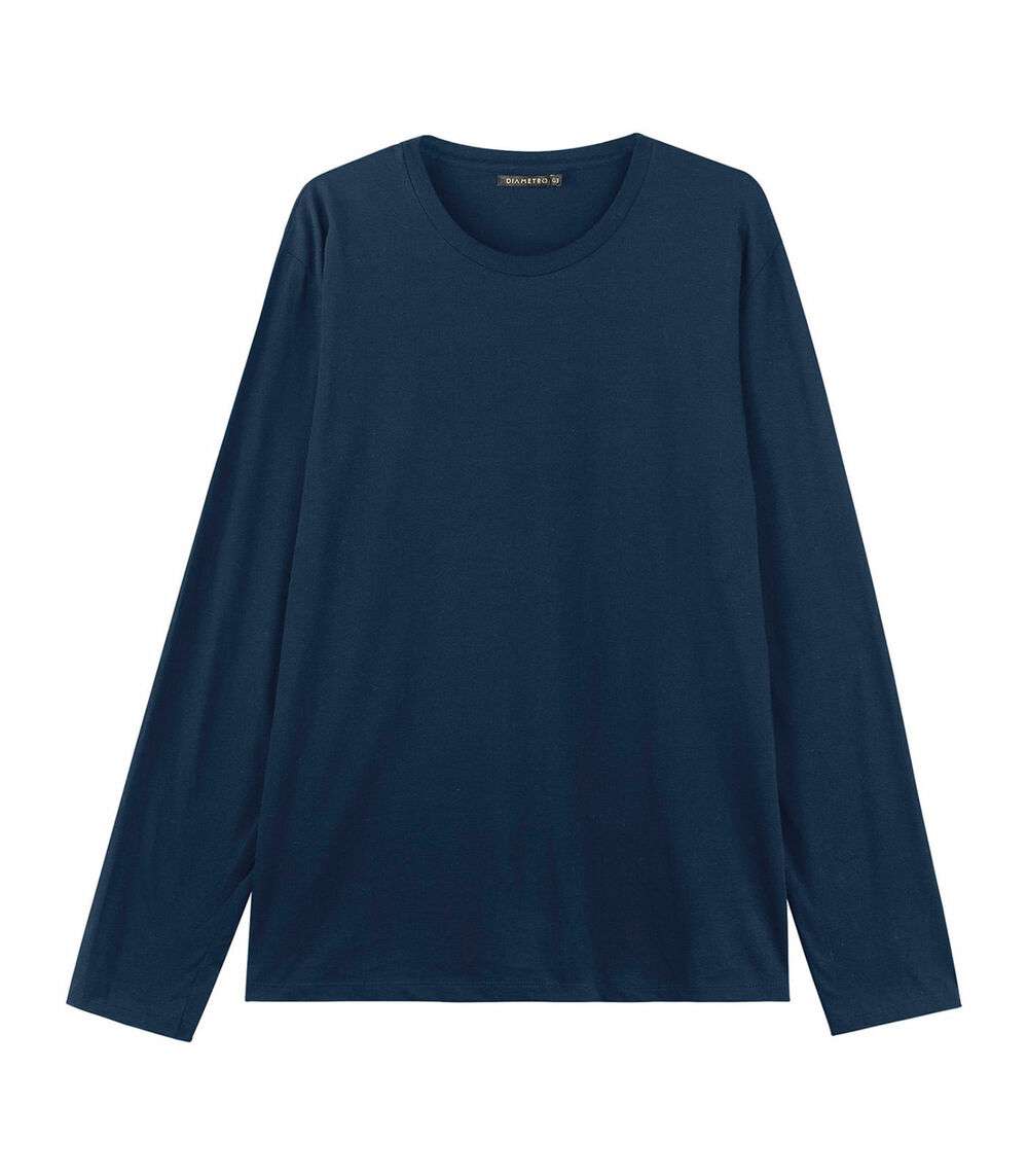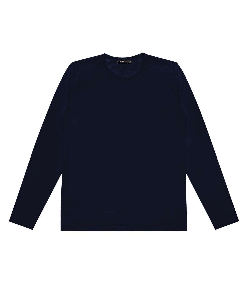 Camiseta Manga Longa Meia Malha Diametro Azul