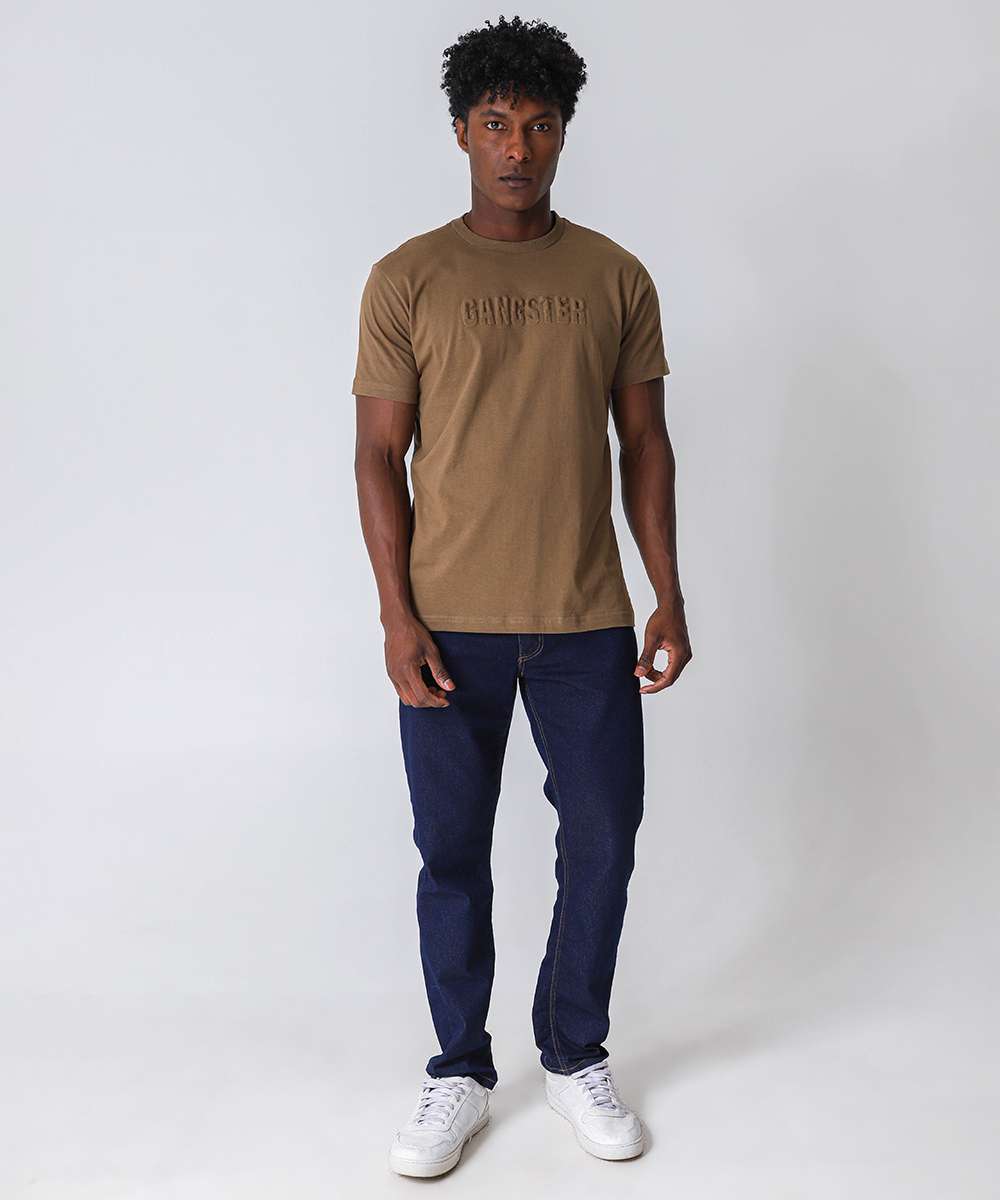 Camiseta Masculina Estampa Frontal Gangster Bege