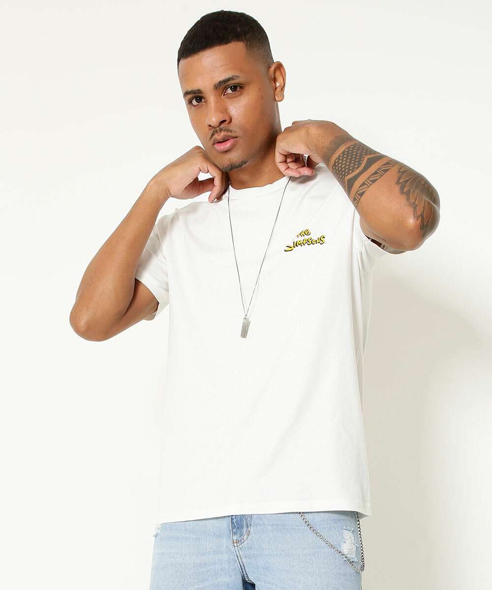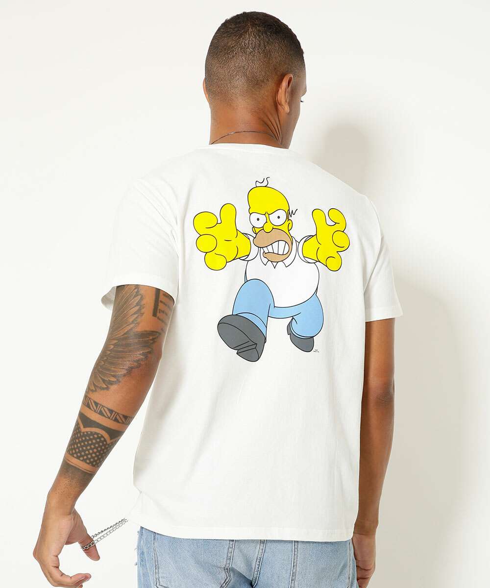 Camiseta masculina confeccionada em malha algodão. Possui estampa Homer na frente e costas, personagem de Os Simpsons, gola redonda, manga curta, acabamento e costura no tom.