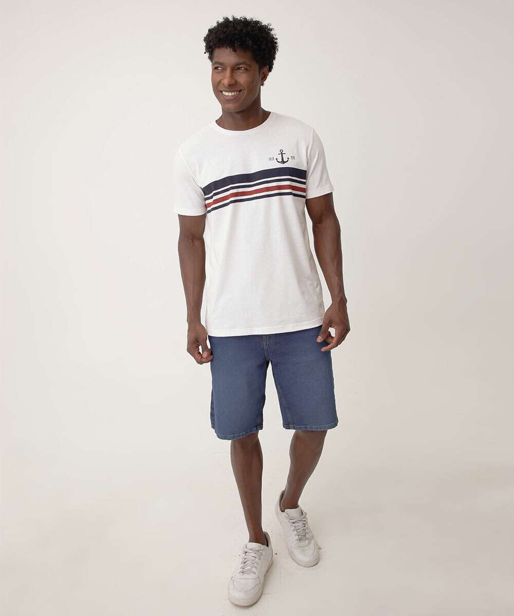 Camiseta Masculina Estampa Listras Marisa Off White