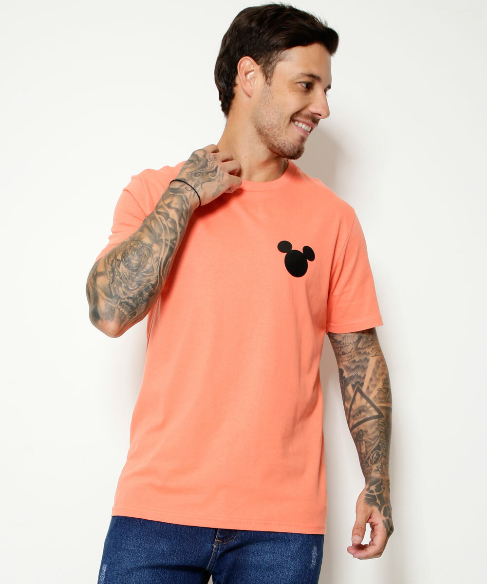 Modelo: Camiseta Masculina Estampa Mickey Manga Curta Disney