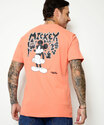 Camiseta masculina, confeccionada em malha algodão. Possui estampa frontal e atrás do Mickey, gola redonda, manga curta, acabamento e costura no tom.