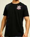 Camiseta masculina confeccionada em tecido algodão. Possui estampa frontal emblema do corinthians, gola redonda, manga curta, acabamento e costura no tom.