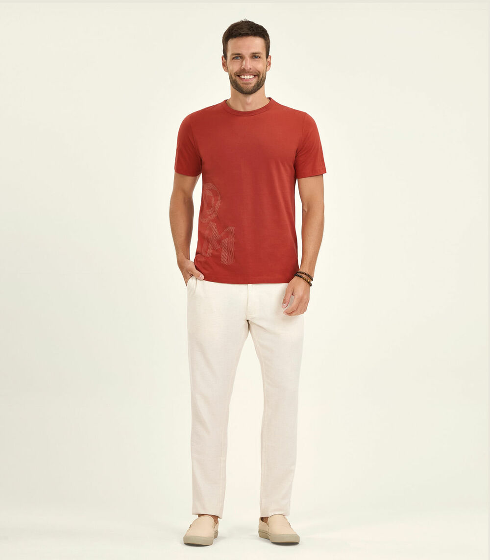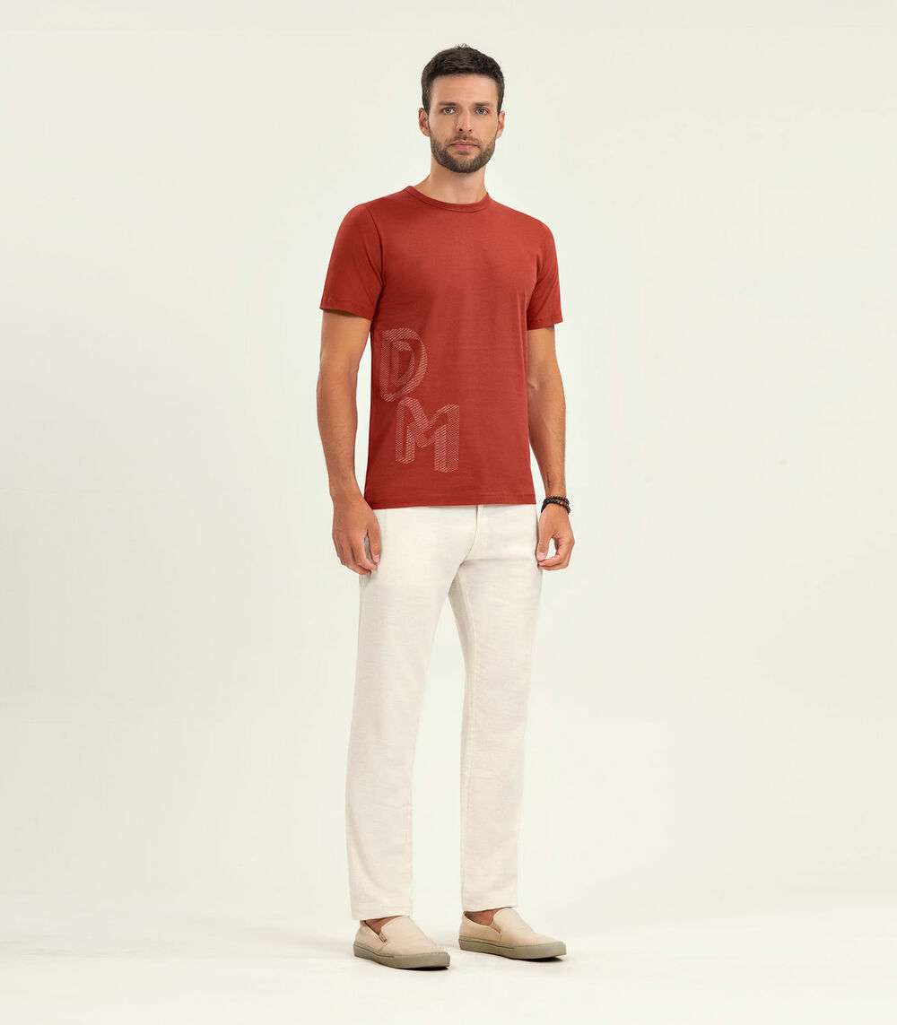 Camiseta Masculina Manga Curta Meia Malha Diametro Laranja