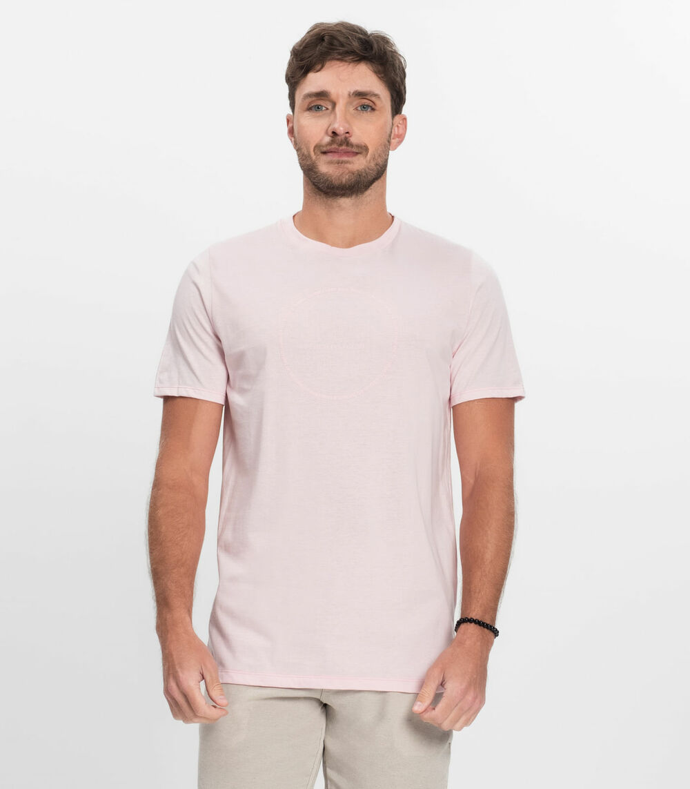 Camiseta Masculina Manga Curta Meia Malha Diametro Rosa