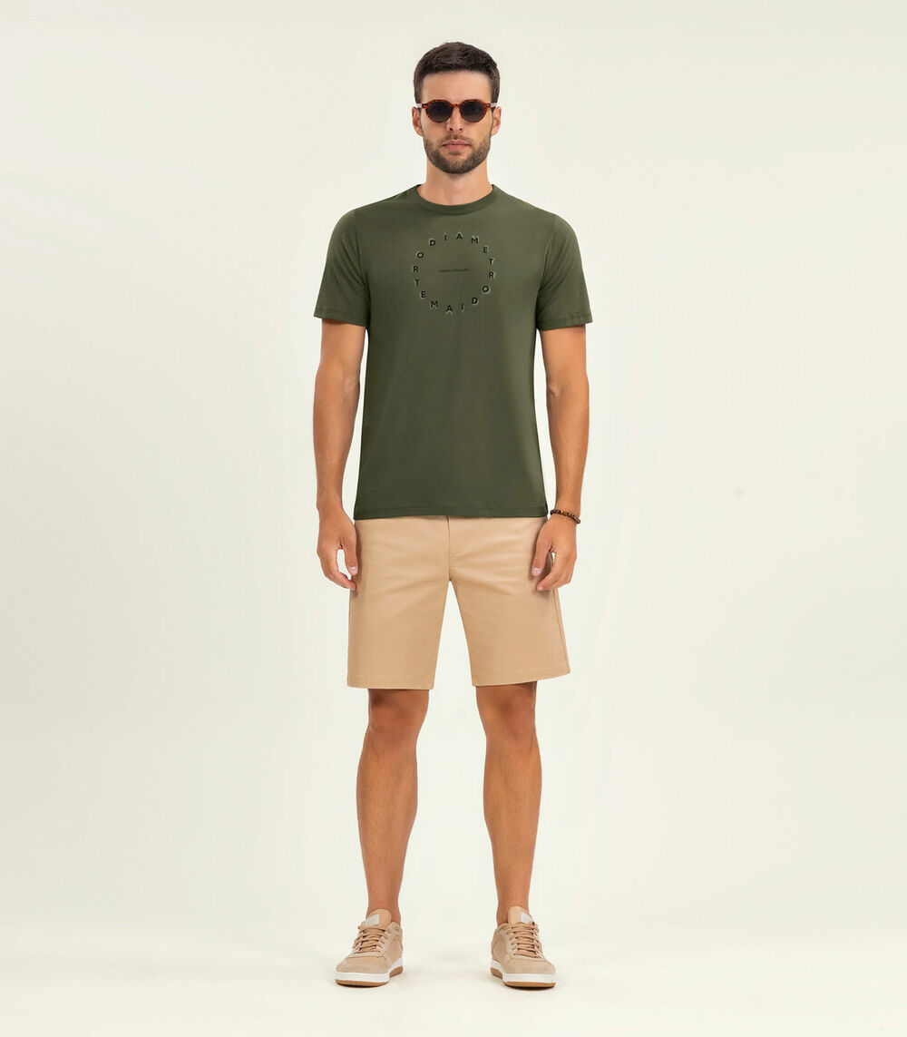 Camiseta Masculina Manga Curta Meia Malha Diametro Verde