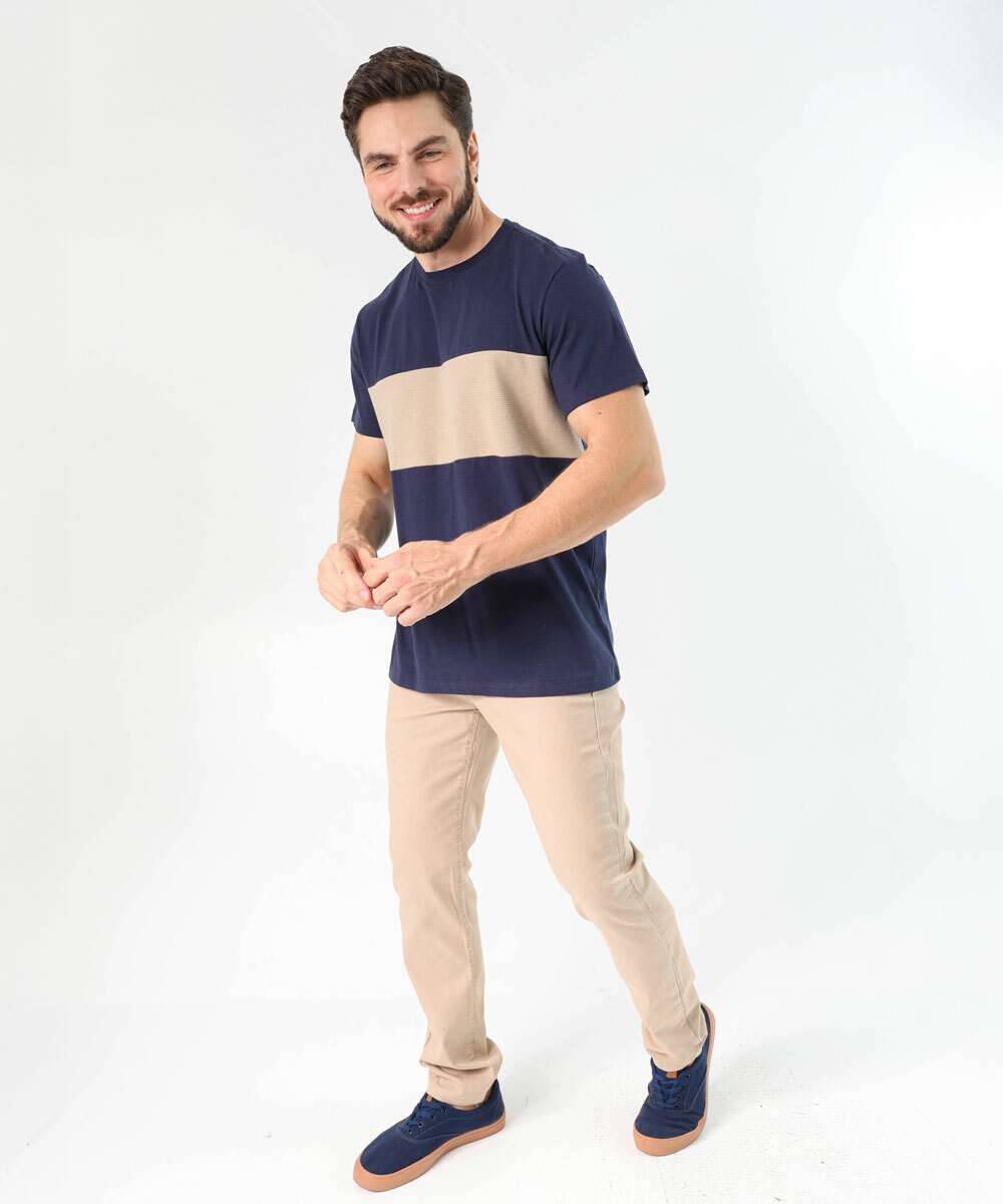 Camiseta Masculina Recorte Manga Curta Marisa Azul