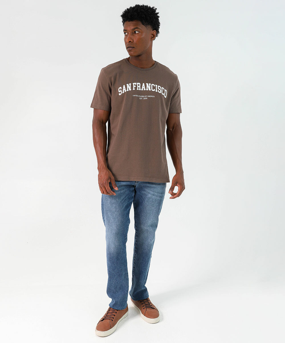 A camiseta masculina San Francisco é perfeita para quem busca um visual casual com atitude urbana. Com estampa frontal em destaque, a peça traz um toque moderno e despojado inspirado no streetwear. Confeccionada em tecido leve e confortável, proporciona ótimo caimento e liberdade de movimento. A modelagem com manga curta e gola redonda garante praticidade para o uso diário.