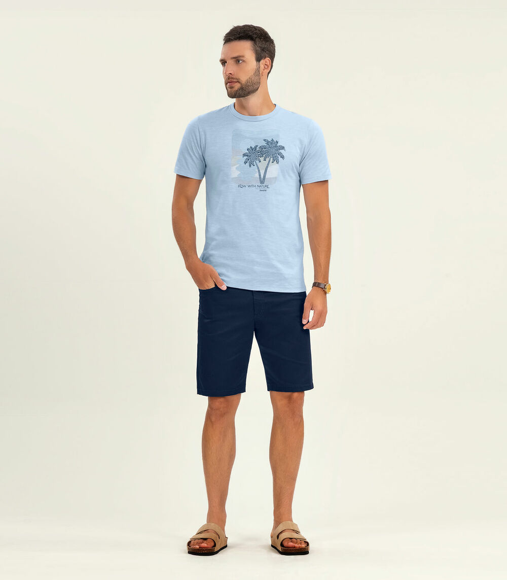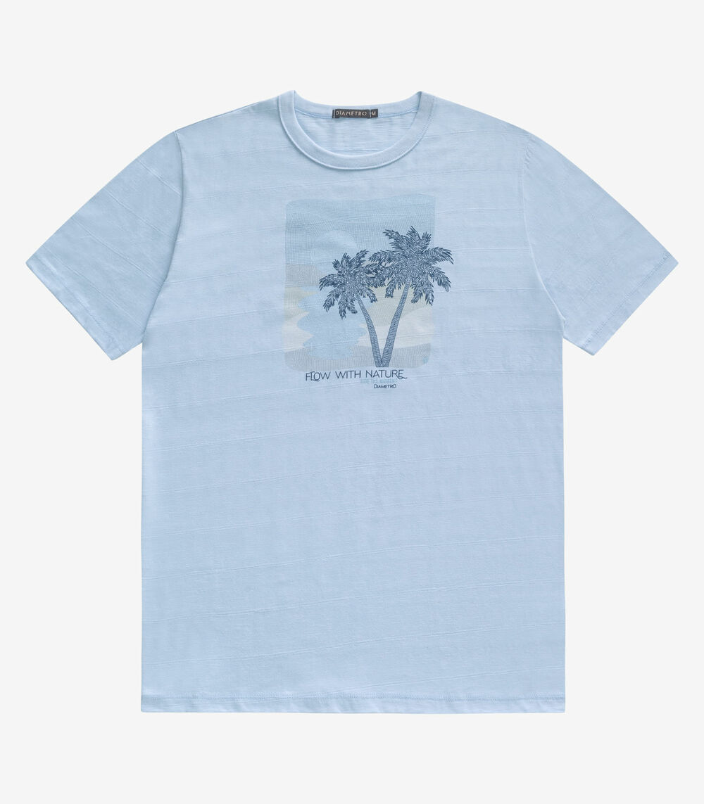 Camiseta Plus Masculina Malha Maquinetada Diametro Azul
