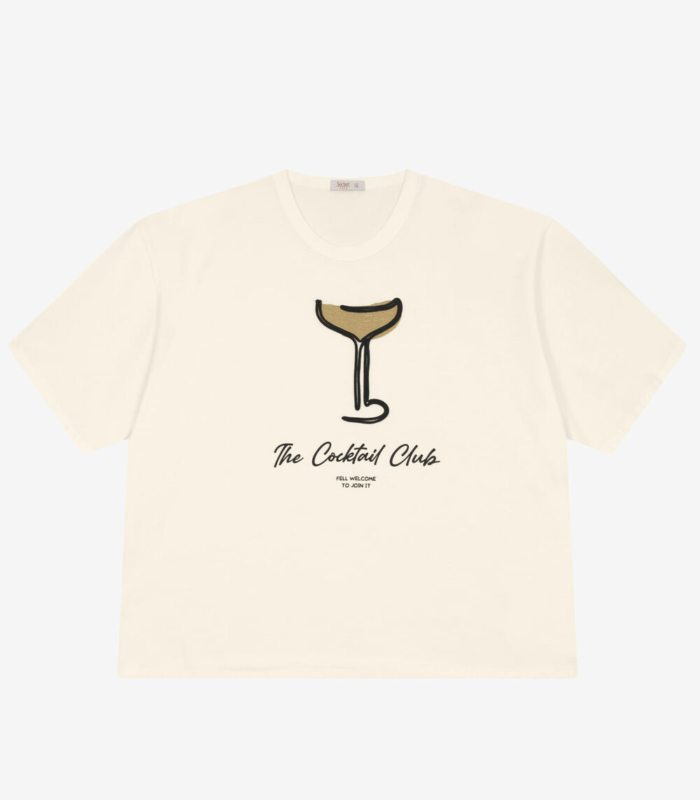 Camiseta Plus Size em Meia Malha Secret Glam Bege