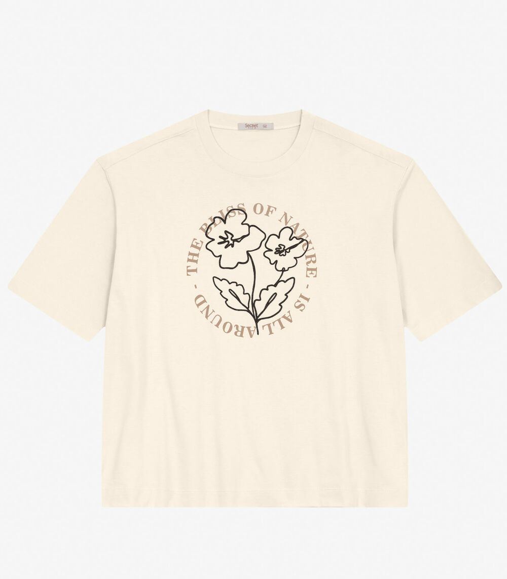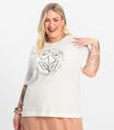 Camiseta Plus Size em Meia Malha Secret Glam Bege
