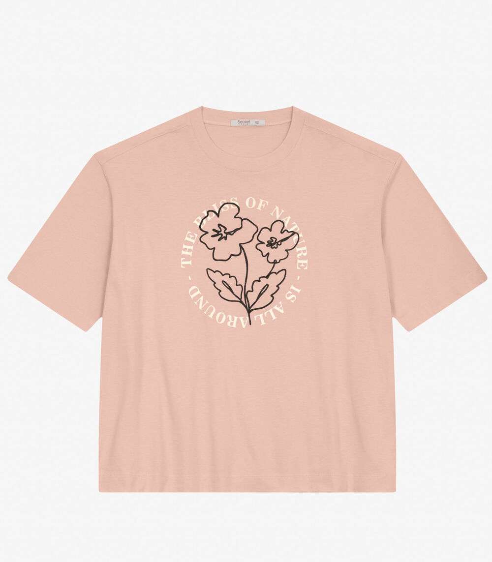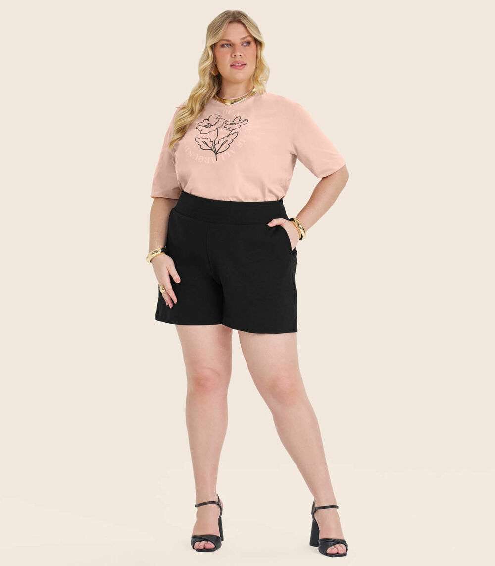 Camiseta Plus Size em Meia Malha Secret Glam Rosa
