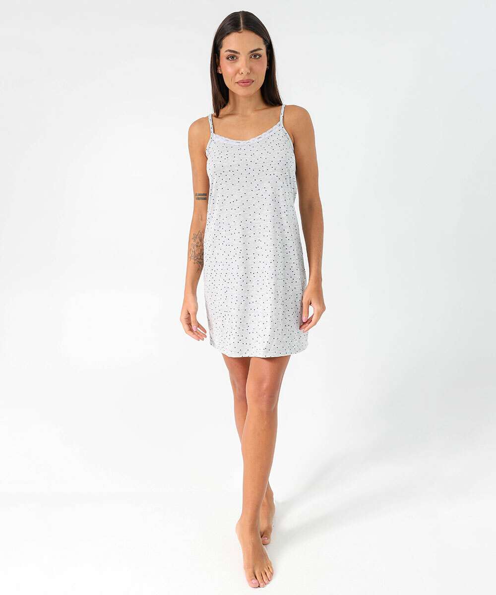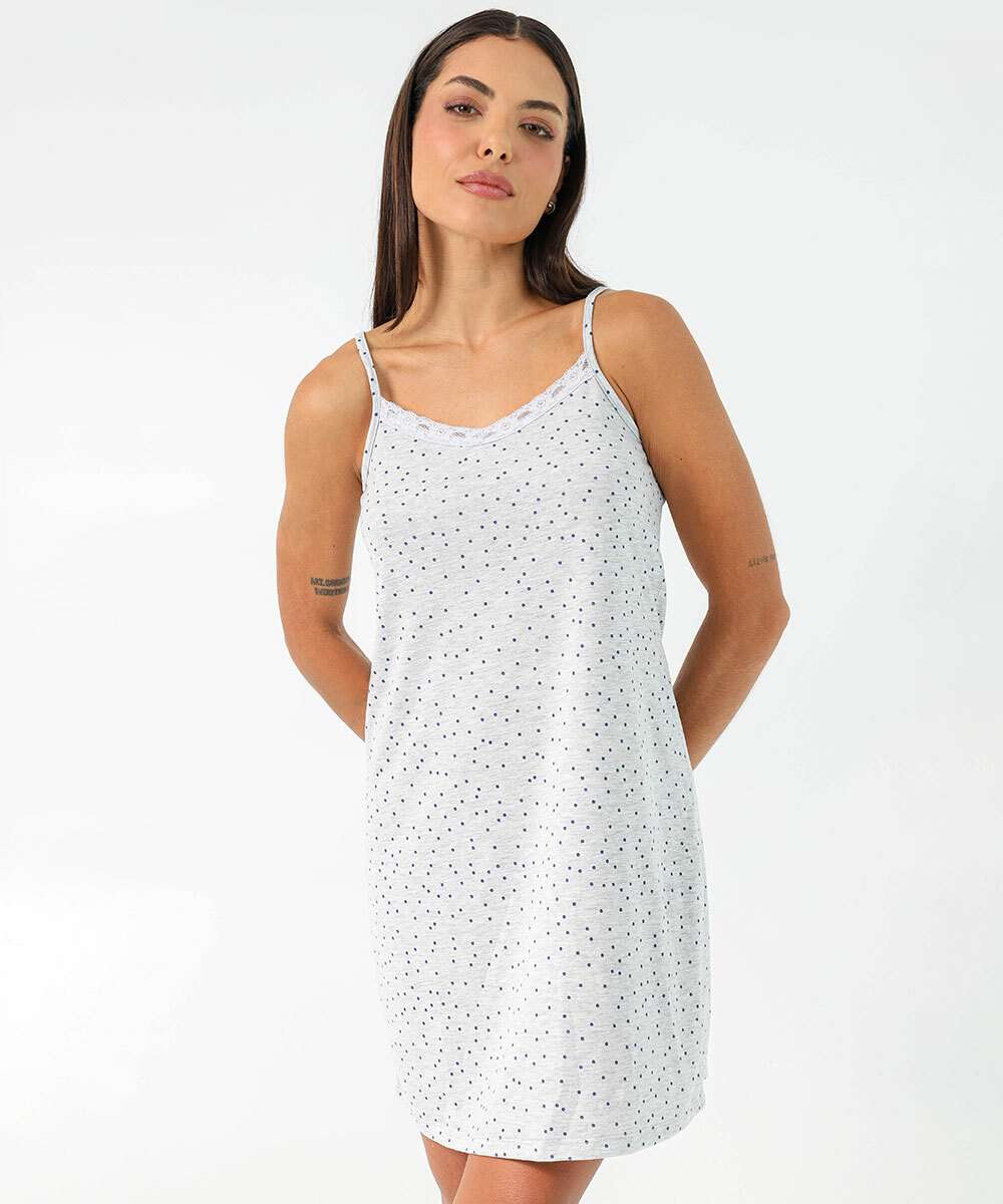 Camisola Estampa Estampa Poá Alças Finas Marisa Cinza