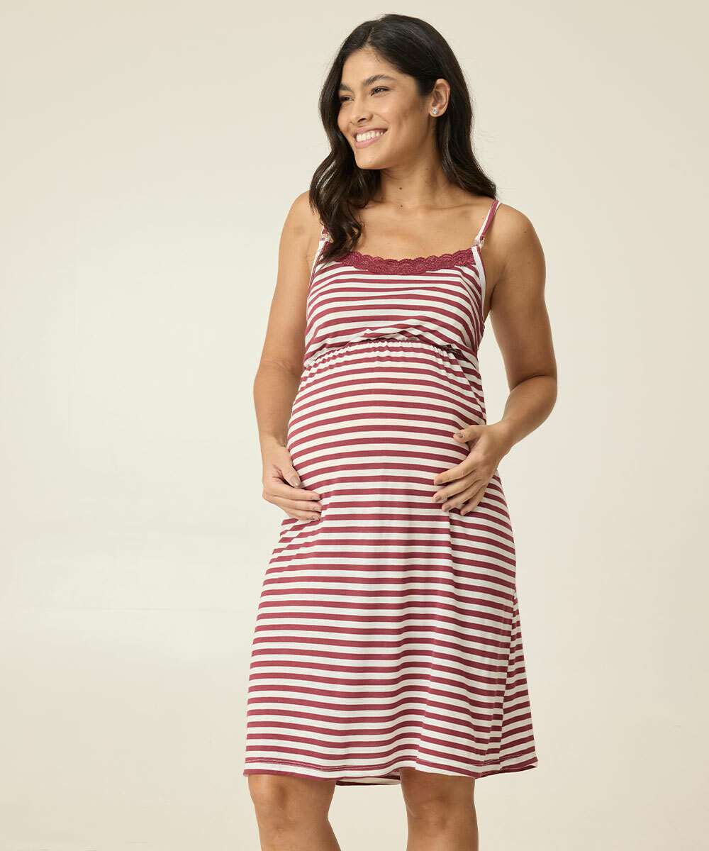 Camisola Gestante Listrada Recorte Renda Marisa