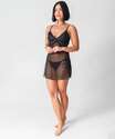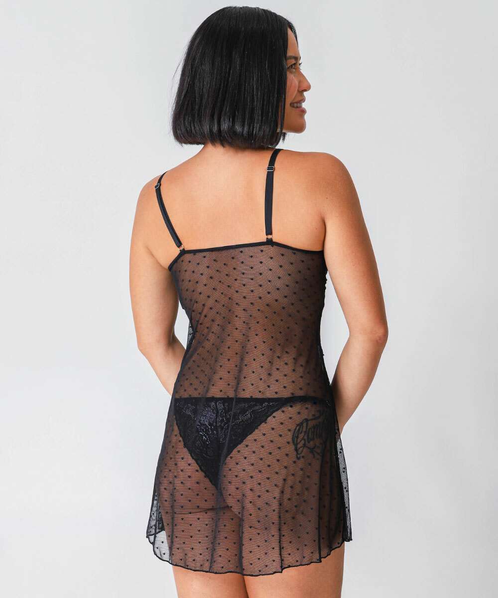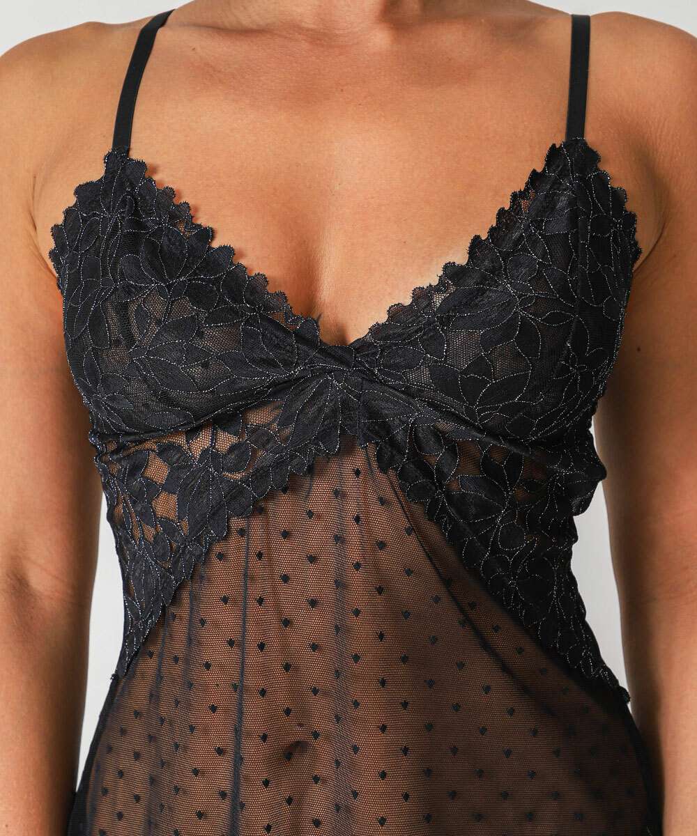 Camisola Sensual Tule Brilho Lurex Renda Marisa Preto