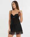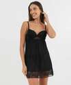 Camisola Sensual Tule Recorte Renda Marisa Preto