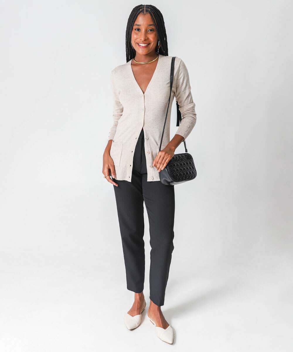 Cardigan Feminino Alongado Bolsos Marisa Preto