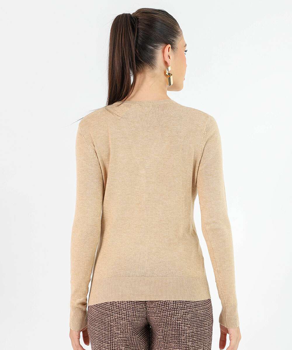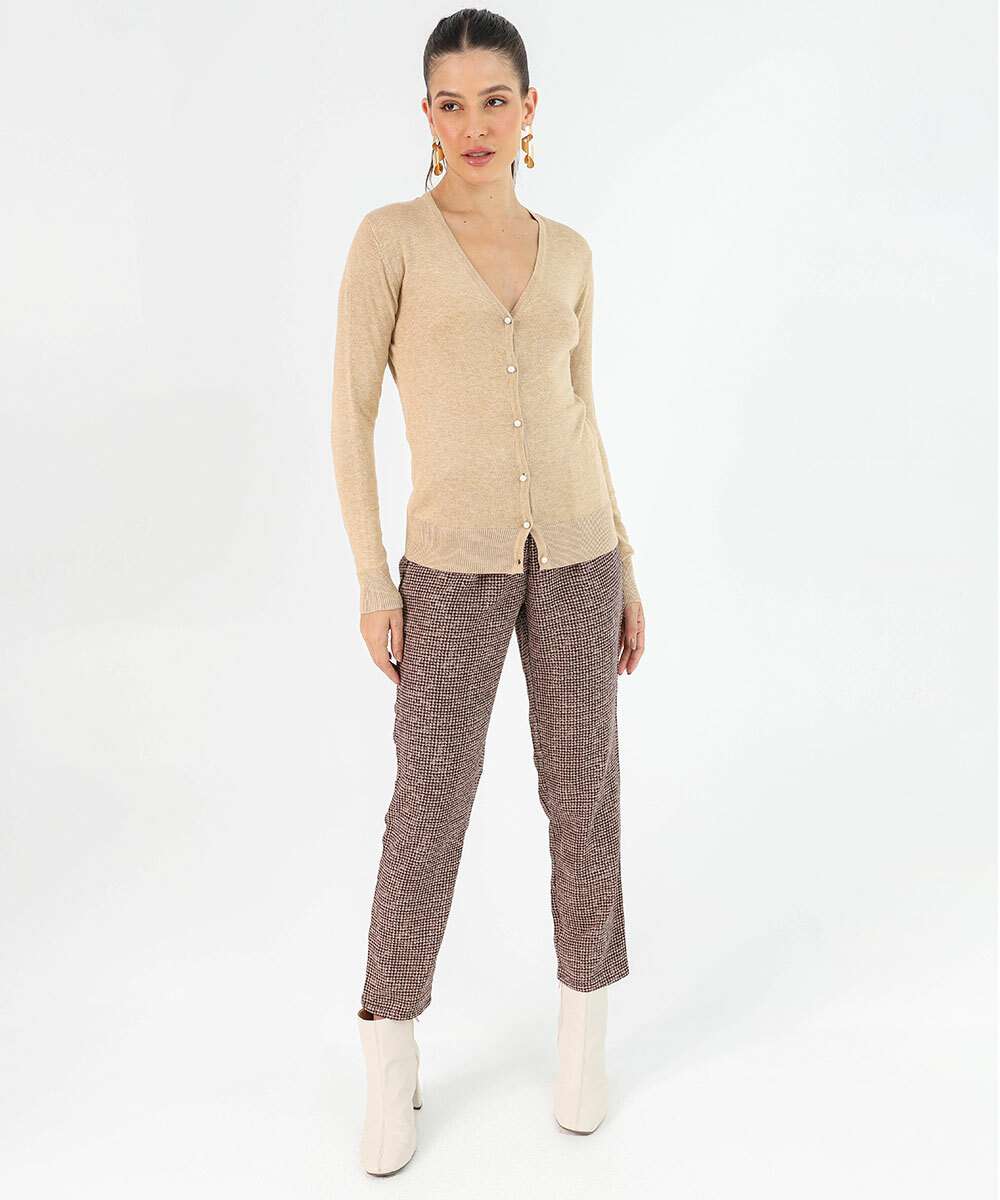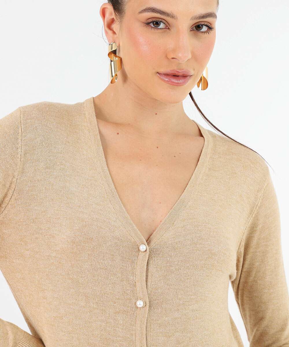 Cardigan Feminino Botões Pérolas Sintéticas Marisa Bege