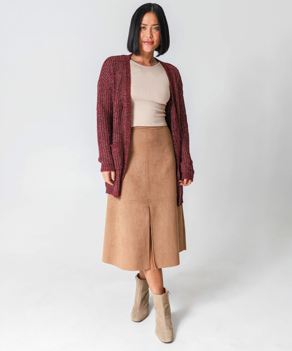Cardigan Feminino Chenille Brilho Lurex Marisa Vinho