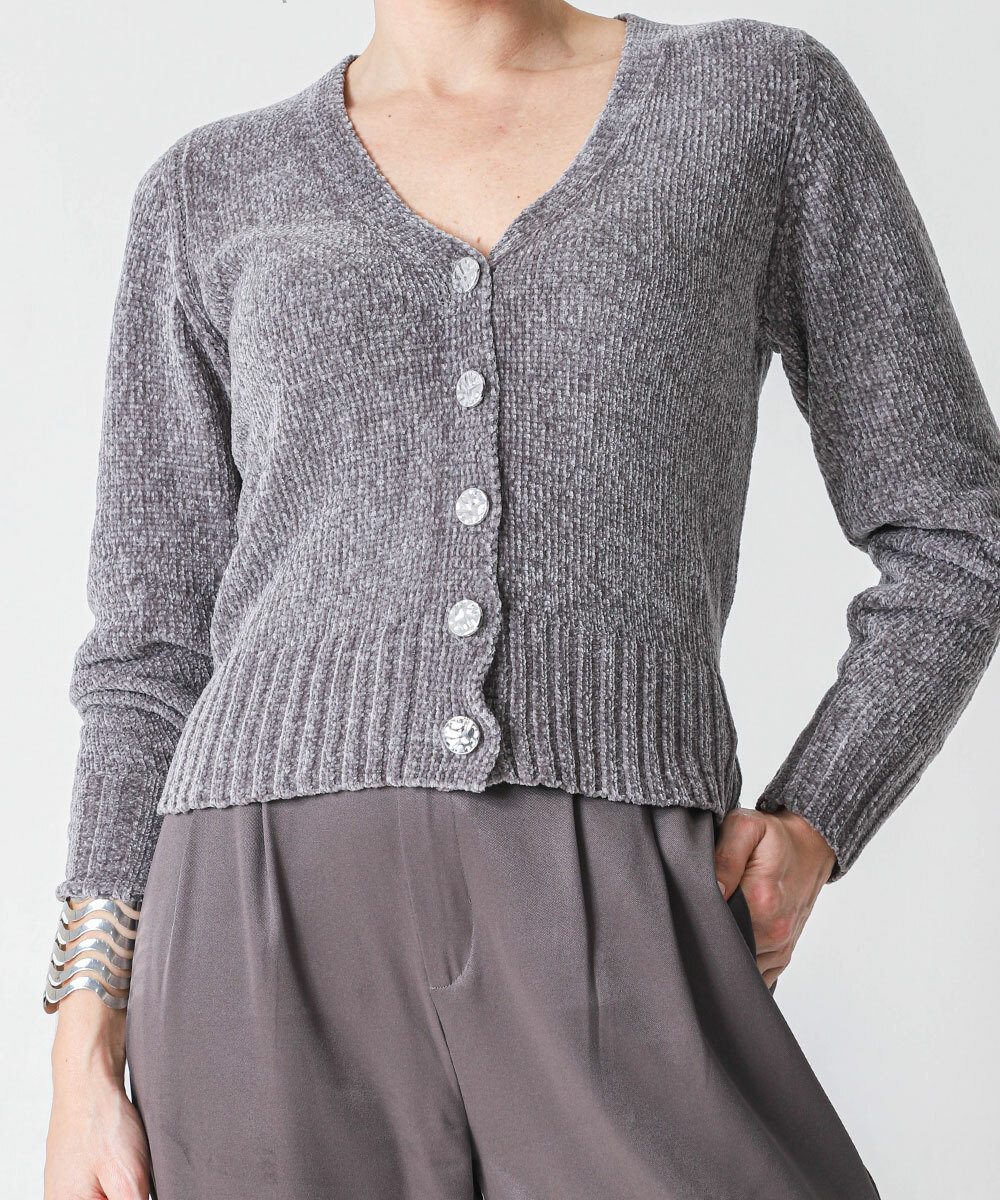 Cardigan Feminino Chenille Marisa Cinza