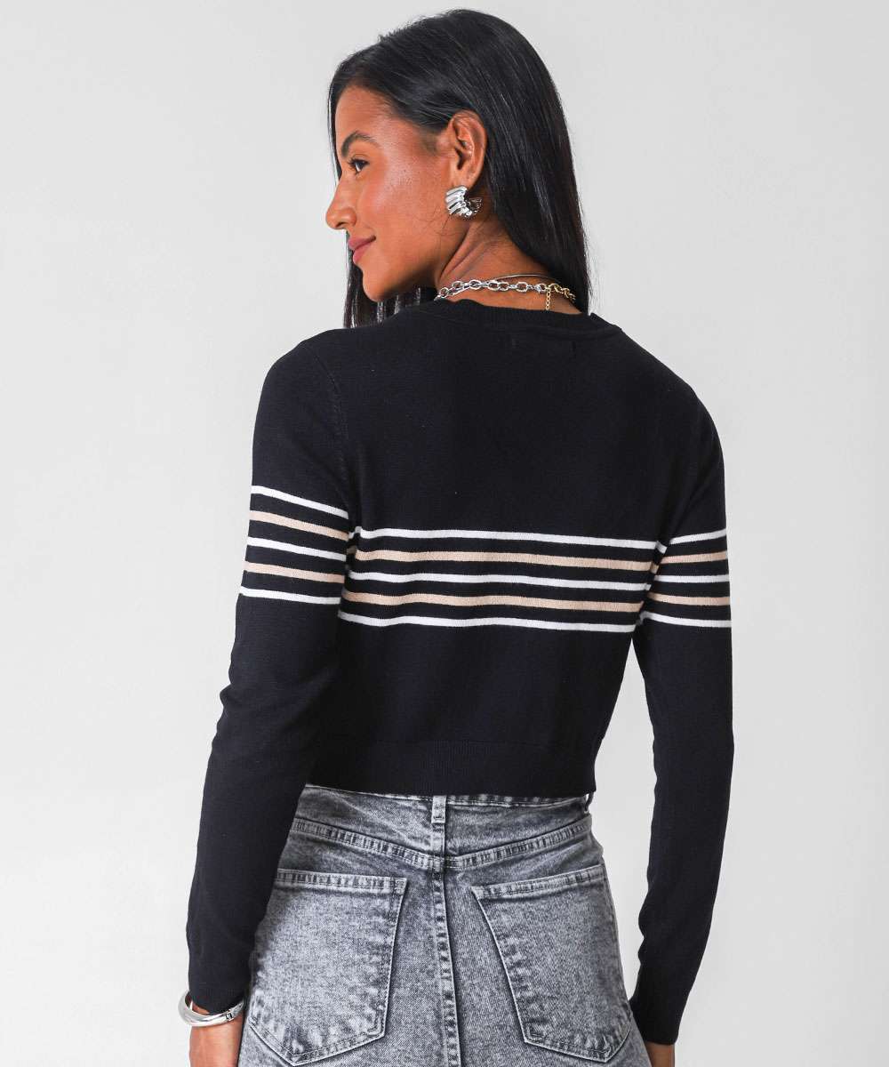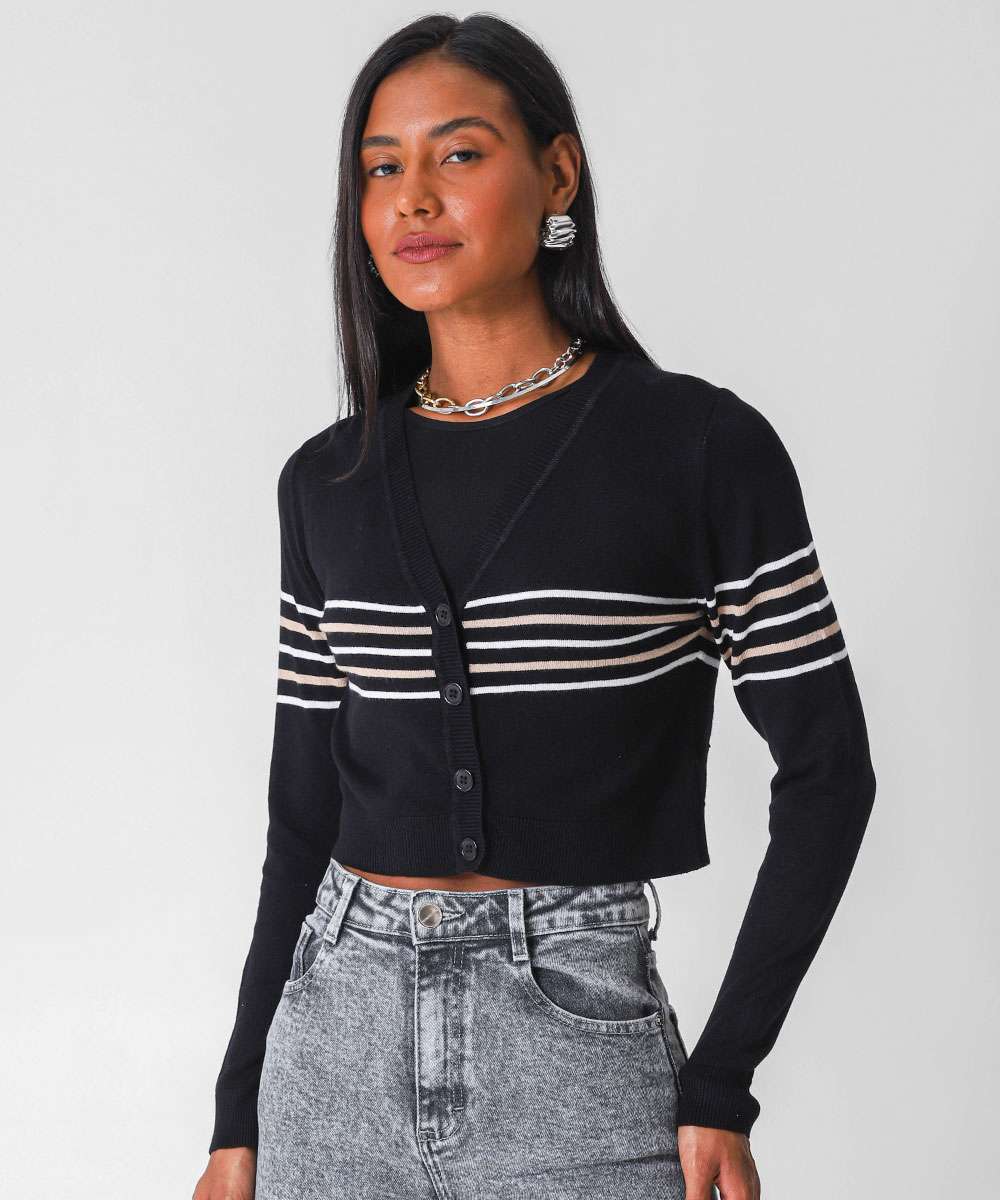Cardigan Feminino Cropped Listrado Marisa Preto