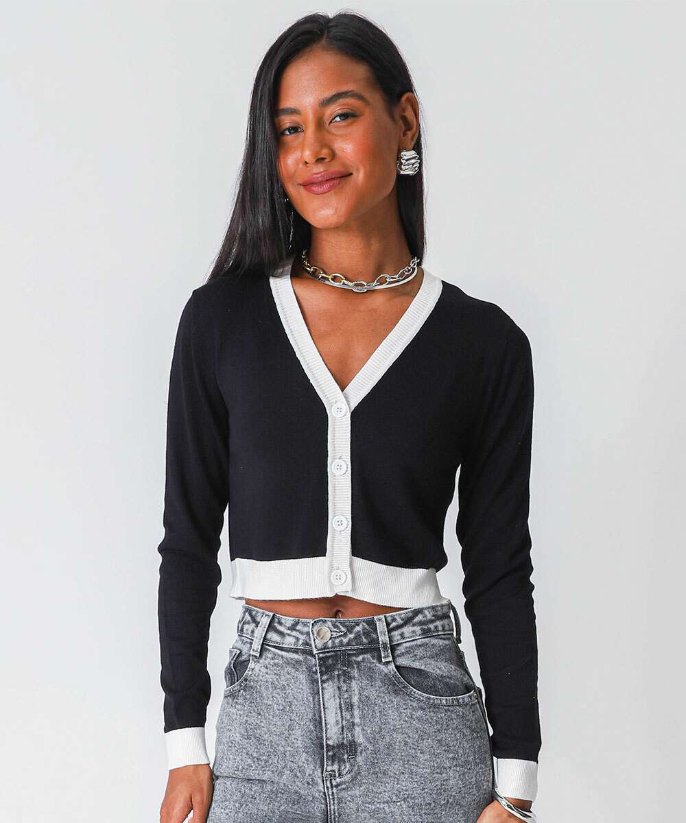 Cardigan Feminino Cropped Marisa Preto