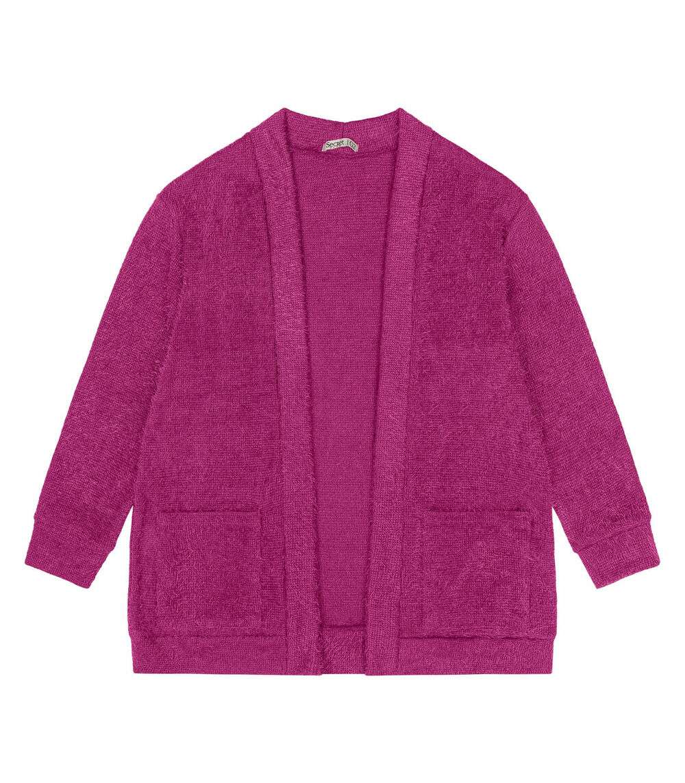 Cardigan Feminino Plus Size Em Tricot Secret Glam Roxo