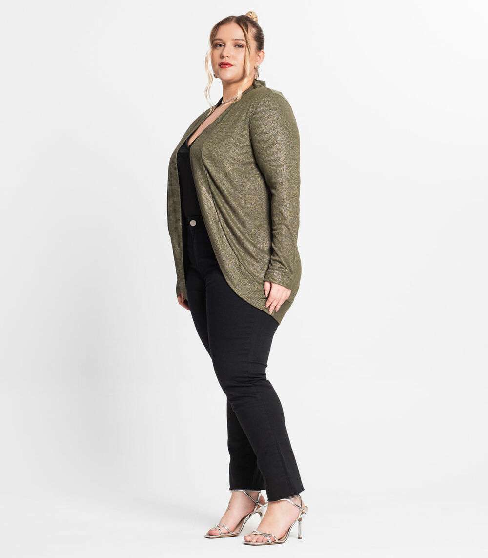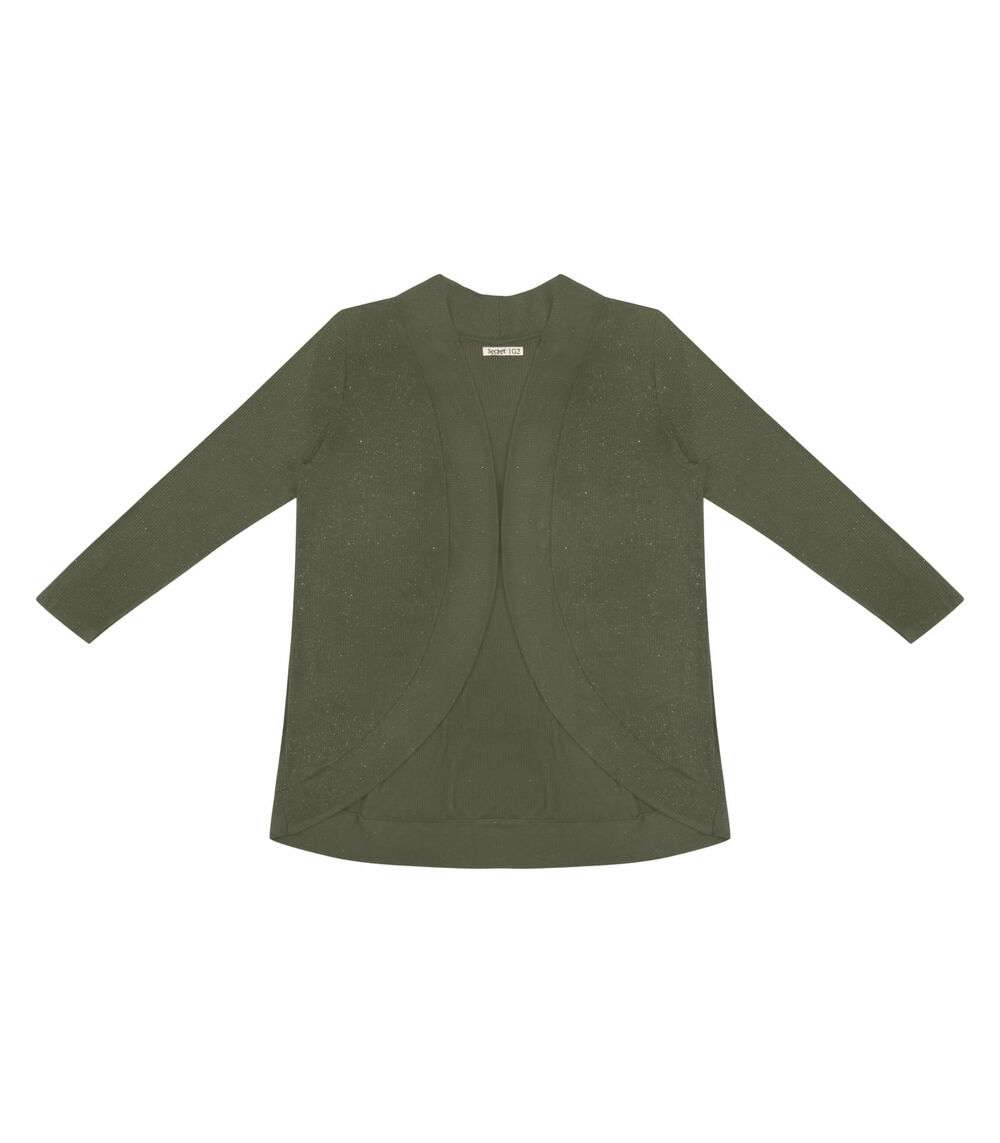 Cardigan Plus Size Em Ribana Canelada Secret Glam Verde