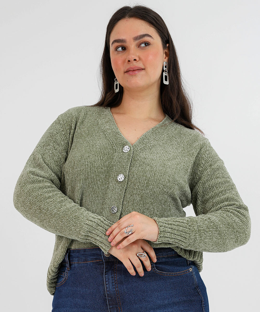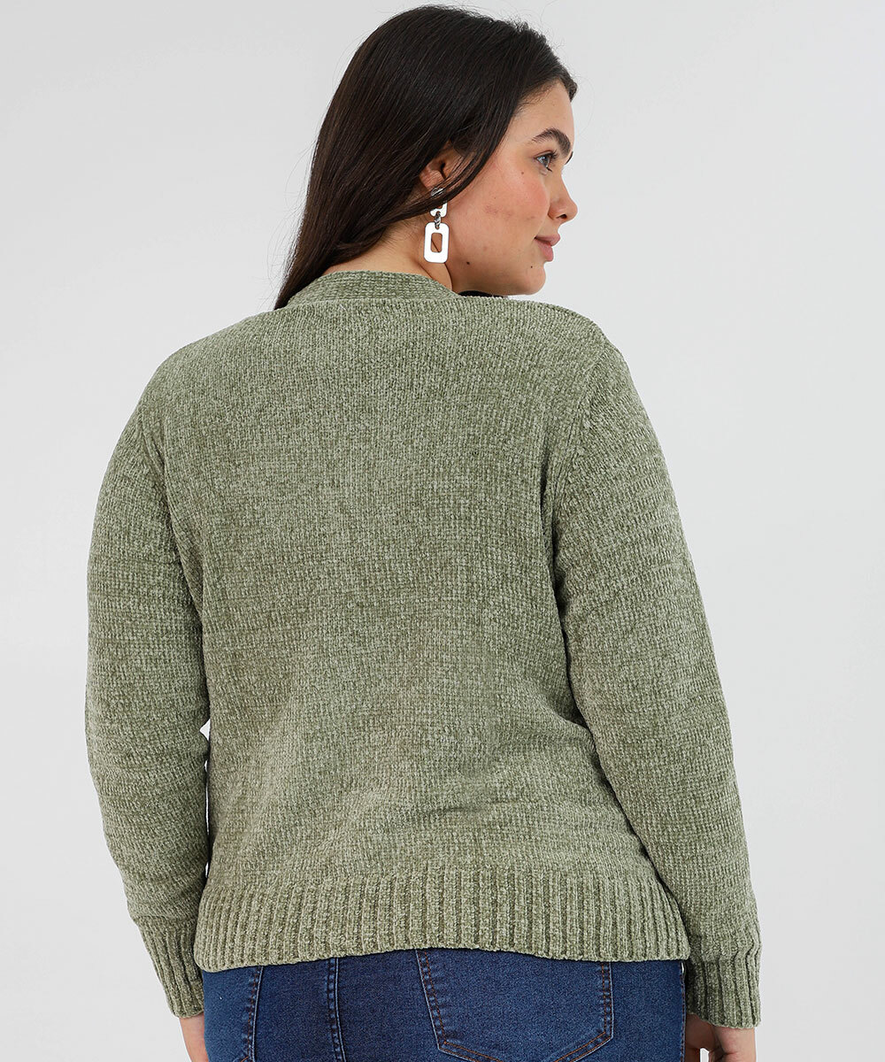 Cardigan Plus Size Feminino Chenille Botões Marisa Verde