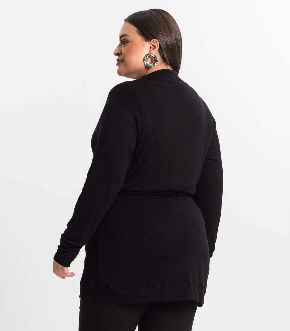 O Cardigan Plus Size Feminino Secret Glam é a escolha perfeita para quem busca conforto e estilo. Confeccionado em visco tricot e ribana de viscose, oferece suavidade e leveza. Seu design conta com cava deslocada, passantes laterais em friso e faixa para amarração, permitindo ajustá-lo ao corpo e criando um visual elegante e moderno. Versátil e sofisticado, o cardigan é ideal para compor looks casuais e arrumados, trazendo praticidade e estilo para o dia a dia.