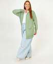 Modelo: Cardigan Plus Size Feminino Tricô Alongado Listrado Marisa